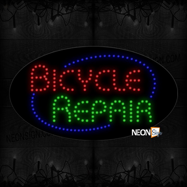 Bicycle Repair With Blue Oval LED Bulb