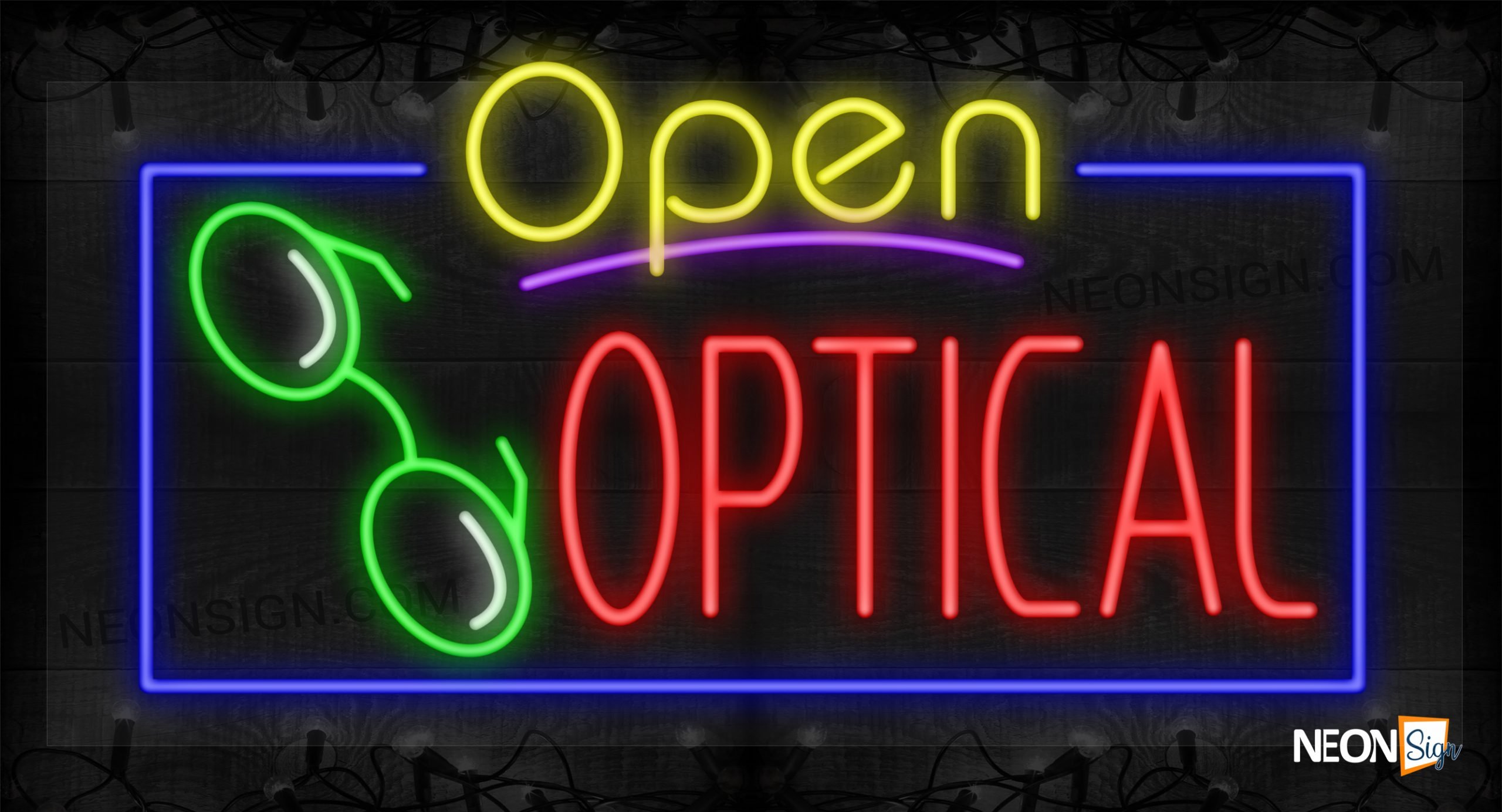 Open Optical with Eyeglass Image and Blue Border LED Flex Sign