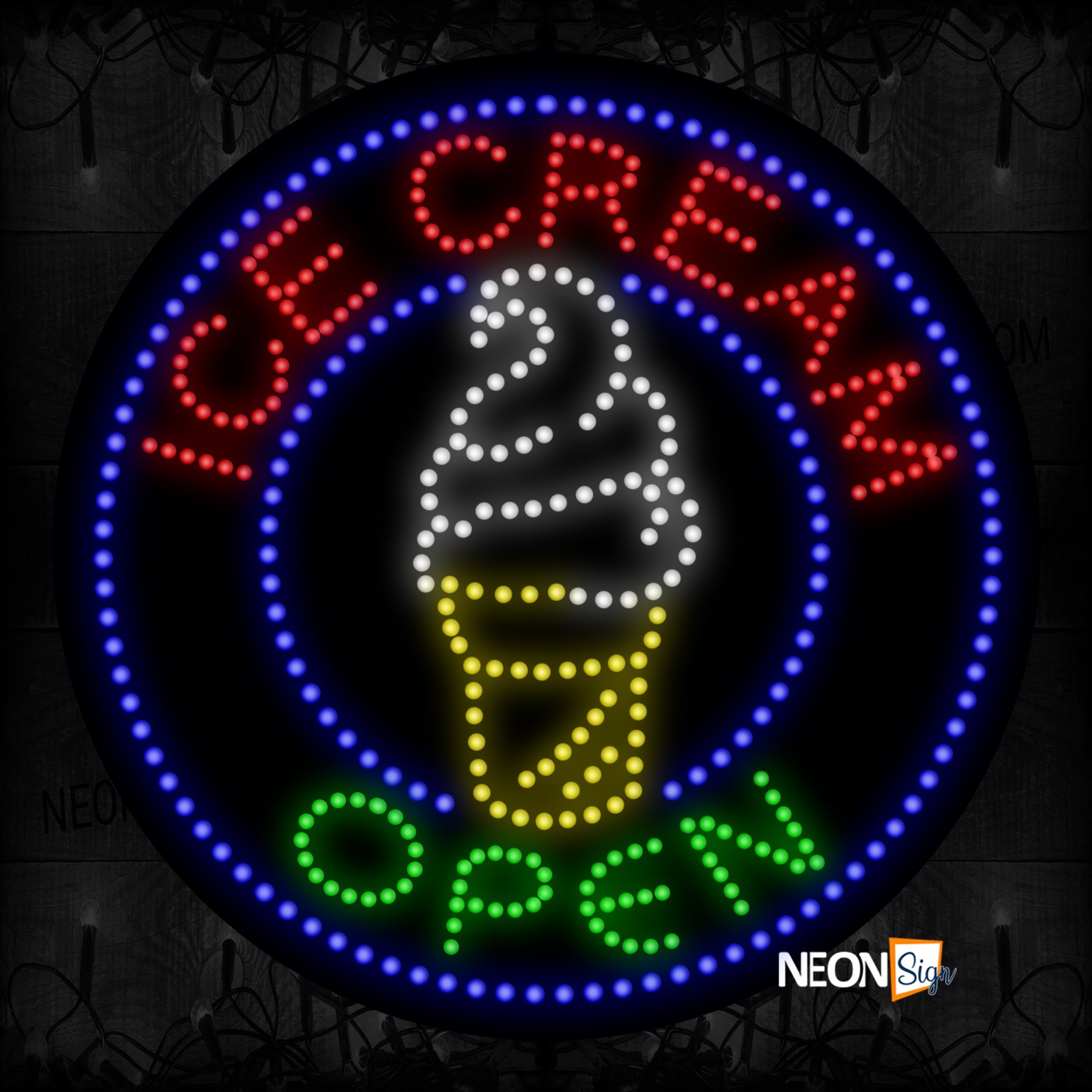 Round ‘Ice Cream Open’ With Blue Border LED Bulb