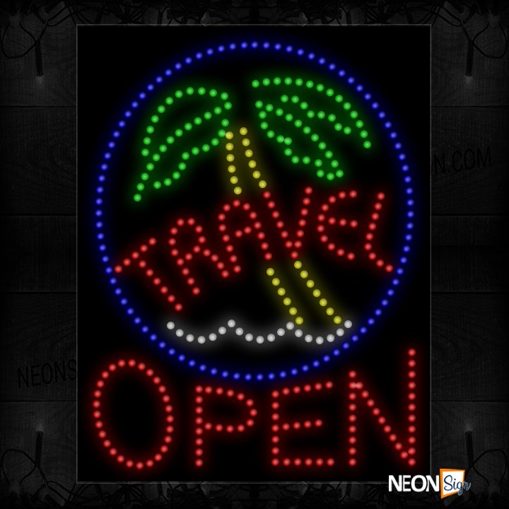 Travel Open With Coconut Tree In Round Border LED Bulb